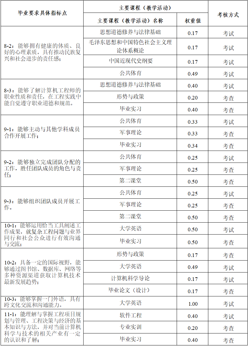 六、主要课程(教学活动)与毕业要求对应矩阵(见表 3)