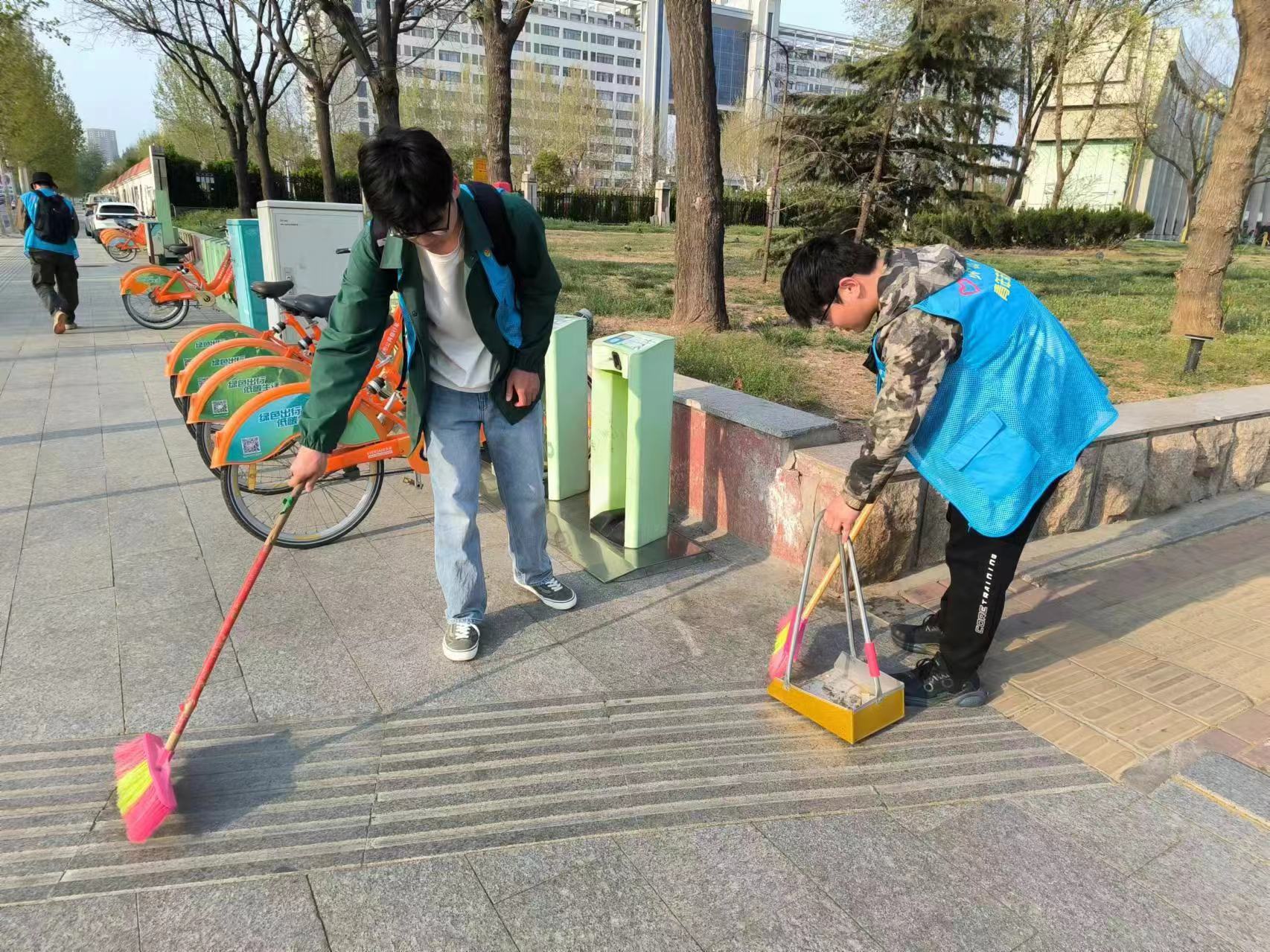 为加强环境的建设,提高无障碍环境的质量,促进社会更加友好的氛围,营造更清洁的社会环境,4月8日,聊城大学E青志愿者协会在文化路开展盲道清扫志愿活动。