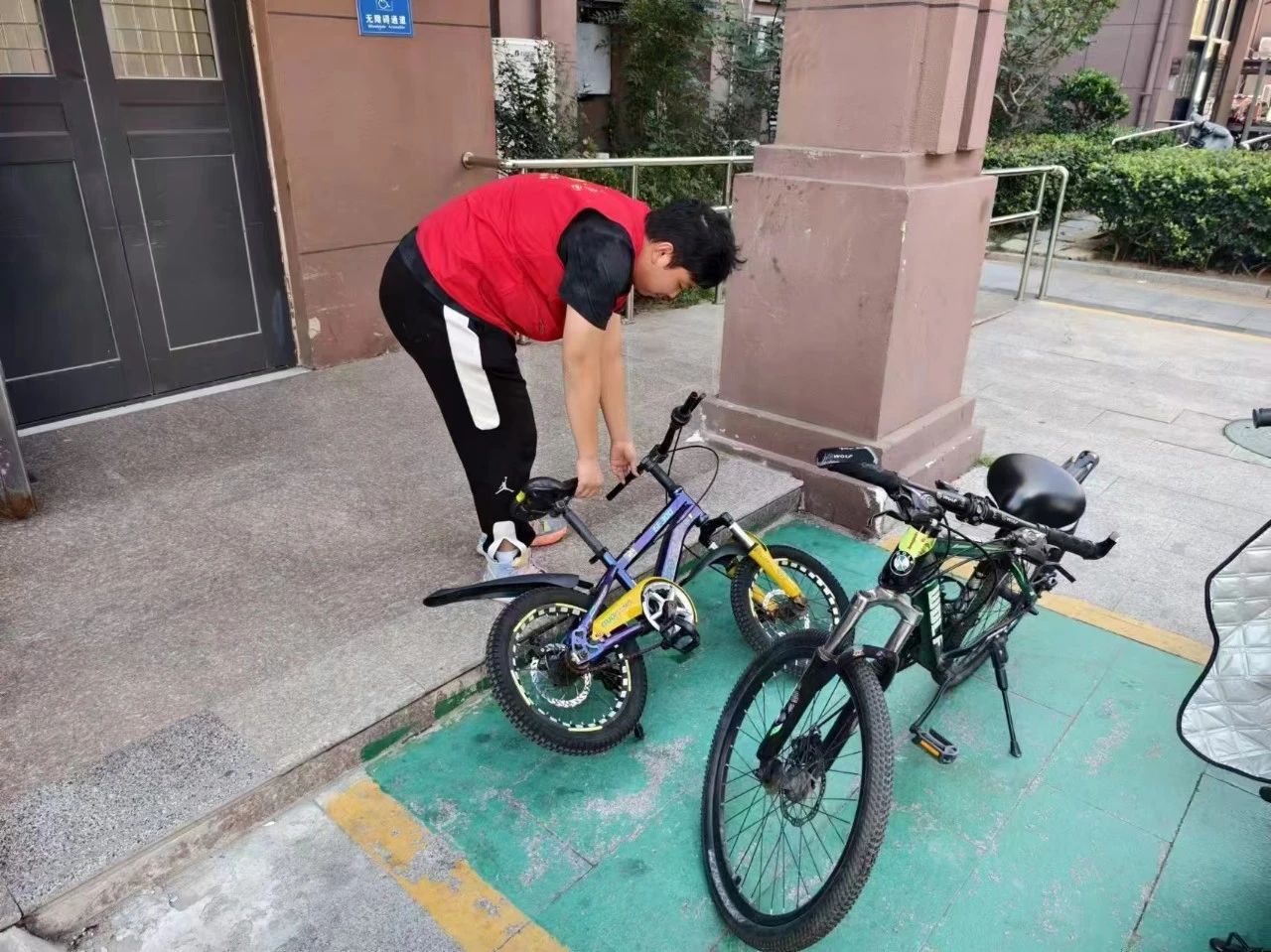 在居民家中,志愿者们怀揣着对长辈的尊敬与关爱,细心地为老人们打扫房间、整理床铺,用勤劳的双手为老人们打造了一个更加温馨、整洁的生活环境。他们不仅用实际行动表达了对老人的尊敬,更通过亲切地交谈,耐心倾听老人们的故事,分享自己的学习趣事,为老人们带去了欢笑与陪伴,有效缓解了他们的孤独感,加深彼此间的情感交流。在社区服务方面,志愿者们更是积极投身其中。他们拿起扫帚、垃圾袋、抹布等工具,认真清理社区的每一个角落,让社区的环境焕然一新。此外,志愿者还细心地将乱停乱放的自行车和电动车摆放整齐,确保社区内的交通秩序井然有序。
