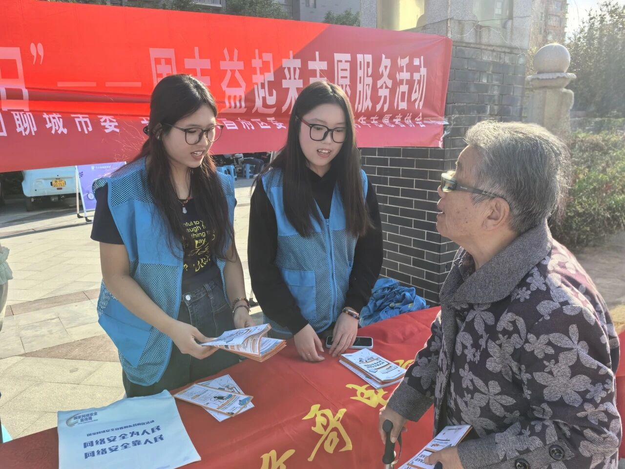 本次活动采取发放宣传手册与开展“电子产品义诊”志愿服务相结合的方式,既普及了网络安全知识,也为居民解决了实际使用中遇到的问题,受到了社区居民的广泛欢迎与好评。活动当天,志愿者们在现场悬挂宣传横幅、设立咨询台,并向居民发放精心编印的网络安全宣传手册。手册内容涵盖电信网络诈骗防范、个人信息保护、家庭网络安全、网络谣言辨识等多个贴近日常生活的主题,以图文结合、案例分析等形式,将专业抽象的网络安全知识转化为通俗易懂的生活常识,有效增强了宣传的针对性和实效性。