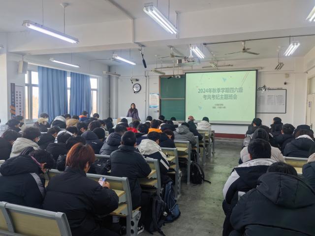 临近四六级考试,为严肃考风考纪,加强学风建设,提高学生诚信考试意识,营造公平公正的考试环境,确保大学四六级考试有序进行。近期,计算机学院组织召开2024年秋季学期大学生四六级考风考纪教育主题班会。
