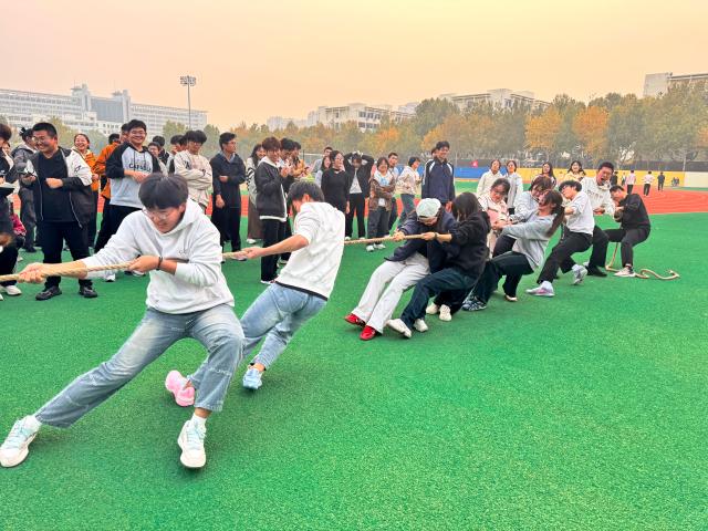 本次拔河比赛采用单败淘汰制规则,实行男女混合赛制。12支队伍经多轮抽签对决,输者即淘汰,半决赛负者加赛决出三四名,直至决出冠亚军。秉持“友谊第一,比赛第二;积极向上,团结奋进”的宗旨,25级新生踊跃参与,展示出阳光开朗,活泼向上的精神风貌。随着比赛哨声的响起,队员们眼神坚毅,双手紧紧握住绳子,双脚稳稳扎根地面,卯足了劲把绳子往后拉。“一二,一二!”整齐划一的口号声响彻云霄,那是团结的呐喊,是力量的凝聚。在绳子的缓缓偏移中,晋级的队伍逐渐显现,队员们齐声呐喊庆祝着进入下一轮的喜悦。不久,决赛的哨声骤然吹响,脱颖而出的两支队伍展开终极较量。队员们拼尽全力,脸上汗珠密布、青筋暴起,倾注所有力量与激情。被淘汰的队员们也并未因此气馁,他们挥舞着双臂,为场上的团队加油助威。一番激烈对抗后,胜者队伍诞生,他们配合默契,力量惊人,充分展现了强大的团队凝聚力。带着这份信心和希望,他们将继续踏上征程,参加校级拔河比赛,为荣誉而战。