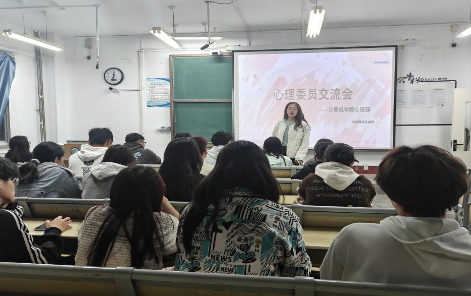 为进一步加强我院心理工作队伍建设,动员学生积极参与525心理健康月活动,促进朋辈心理辅导员积极践行助人自助职责,充分发挥其在心理健康工作中的桥梁纽带作用,计算机学院心理部于4月10日在10#C121召开心理委员交流会。计算机学院辅导员李佳雯出席本次交流会,各班心理委员参加本次交流会。