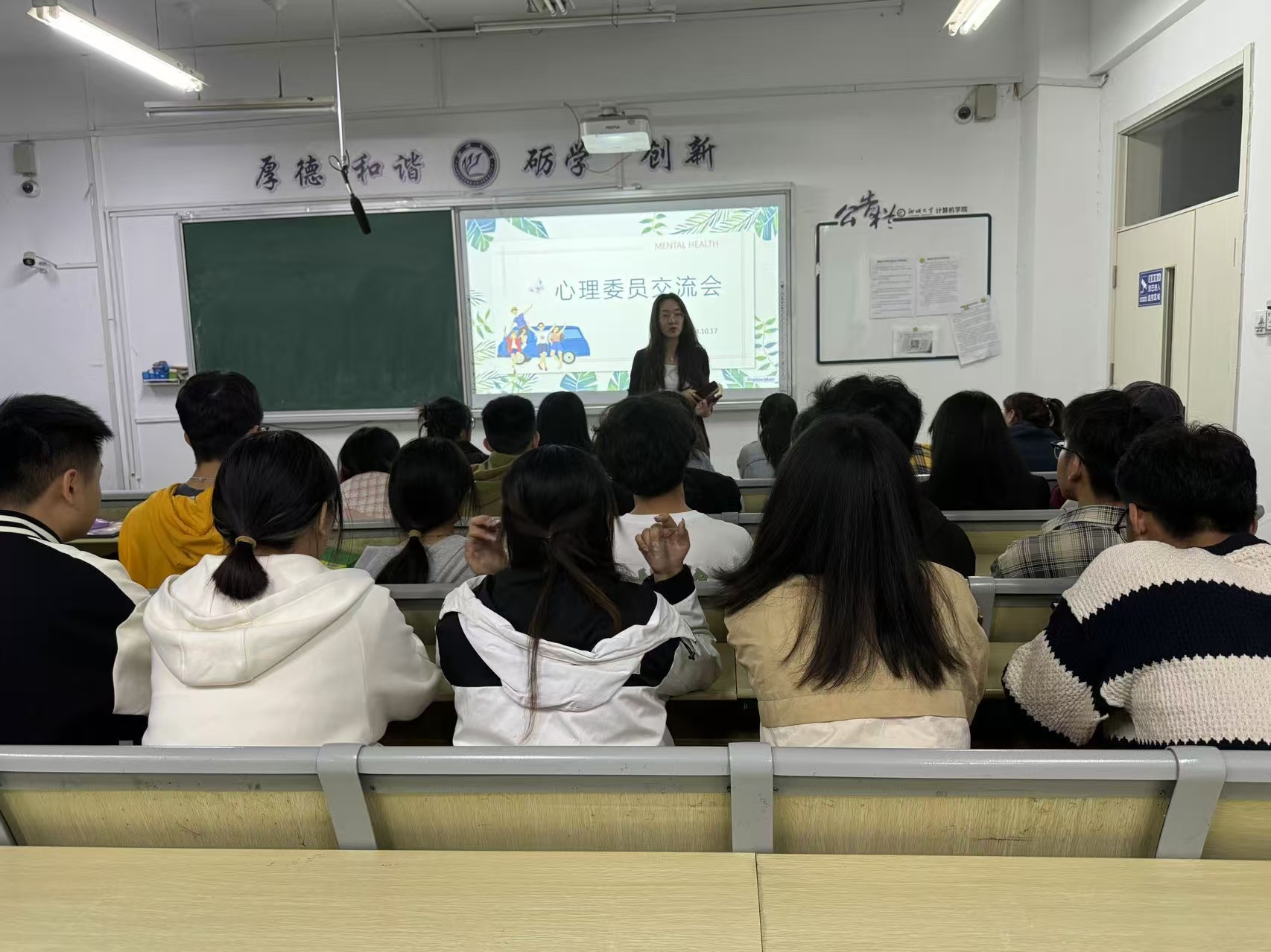 为进一步推动学院的心理健康教育工作开展,充分发挥朋辈互助作用,促进心理委员的交流沟通,计算机学院于10月17日在西校区10号楼C120教室举办心理委员交流会,由计算机学院心理辅导员李佳雯主持,各班心理委员参加会议。