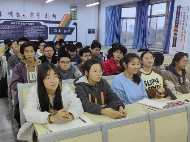 活动伊始,王国凯生动形象地将大学生活比作一款闯关游戏并带领大家回顾了他的通关历程,同时分享了宝贵的成长经验。他主要从自我介绍和学生干部经历两大维度展开阐述,以个人经历为切入点,向同学们详细介绍了绩点提升、竞赛参与以及组织和社团活动三大关键环节。在此过程中,他巧妙地穿插了”高分小tips“和“快来捡装备”两个小活动,以其幽默风趣的演讲风格,使同学们在轻松愉快的氛围中深刻体会到了大学生活的丰富多彩与无限乐趣。同时,他围绕学生组织中的职责与任务、对学生干部的工作期望与具体建议,以及个人未来发展规划与目标设定这三个核心议题向同学们分享了如何做一名优秀的学生干部和如何规划大学时期发展。在活动过程中,同学们认真听讲、积极配合并分享了自己的收获。活动最后,李佳雯对本次活动进行了总结,她着重强调了心灵成长与自我磨砺的重要性,并深切呼吁每位同学能够对此给予充分的重视,学会在大学期间妥善协调学习生活、部门职责以及人际交往等多方面的关系,以实现个人的全面发展与进步。