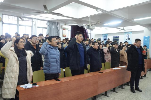 此次党员大会由解方文同志主持,主要议题为表决关于马润梓等34名同志的转正情况。首先,由学生党支部宣传委员唐龙龙宣读转正人员名单,转正申请人逐一上台汇报自己为预备党员期间在思想态度、生活、学习等方面的表现情况,表达对党的忠诚,表示坚定不移跟党走,为共产主义奋斗终生的决心,并提出希望如期转正的申请。随后,相关介绍人分别汇报对每位同志的培养、教育、考察情况,提出能否转为中国共产党正式党员的意见。由支部组织委员靳学斌代表支部委员会说明对转正人员的综合考察意见。经与会党员充分讨论和无记名投票表决,34名同志顺利通过党组织的审核,如期转为正式党员。唐龙龙同志带领全体党员集体宣誓,重温入党誓词。至此,大会圆满结束。