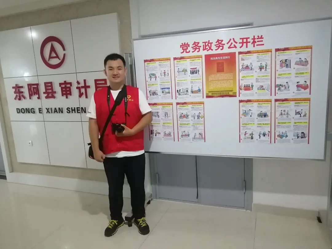 王梓霖在就职于东阿县审计局,主要为县委、人社局送审计局的资料,在办公室整理资料,书写文案。在志愿活动开展期间,他的主要工作是负责摄影,在遇到不同的角度,光线的情况下,他及时做出了拍摄的调整,因此应变能力得到了提升,拍摄的照片得到了领导的肯定。