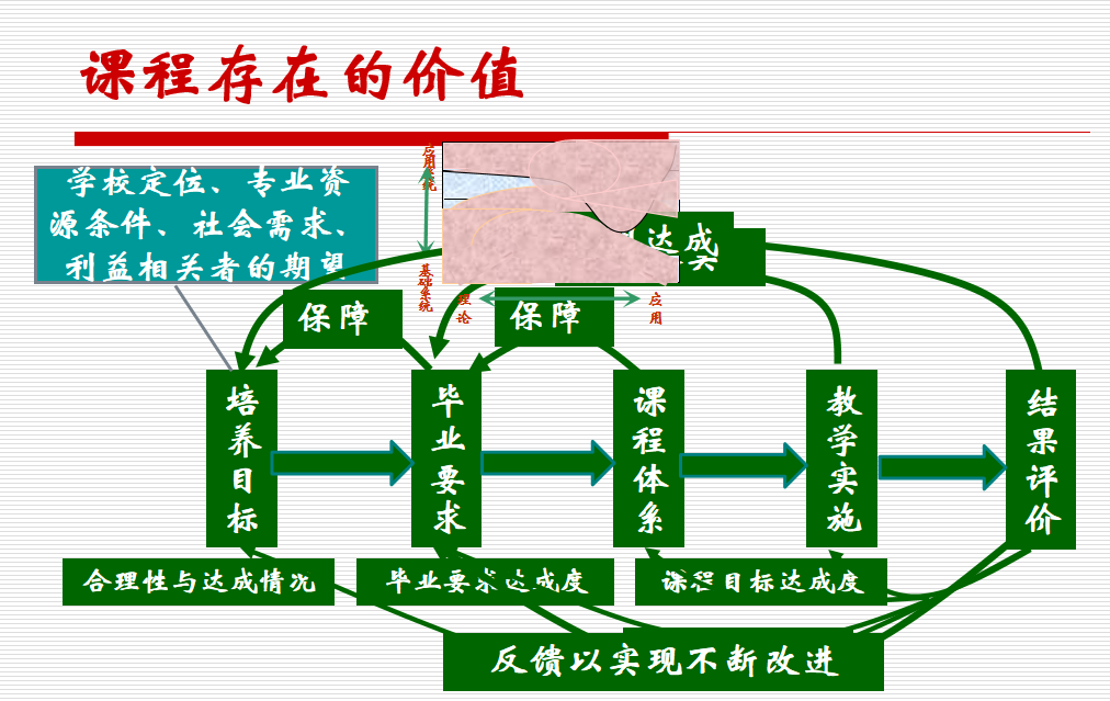 二、站在本专业人才培养的高度看课程,提出课程存在的价值。梳理培养目标、毕业要求、课程体系、教学实施以及结果评价之间的关系,要进行不断地反馈和改进;提出构建毕业要求达成的支撑矩阵,每个教学活动都应找到自己的位置,实施有效的毕业要求达成评价,用最具代表性的教学活动评价毕业要求的达成;提出要站在人才培养的高度上开展课程教学,摆脱“三个为本”提高教学活动的效率,保证面向毕业要求的课程教学目标的达成。
