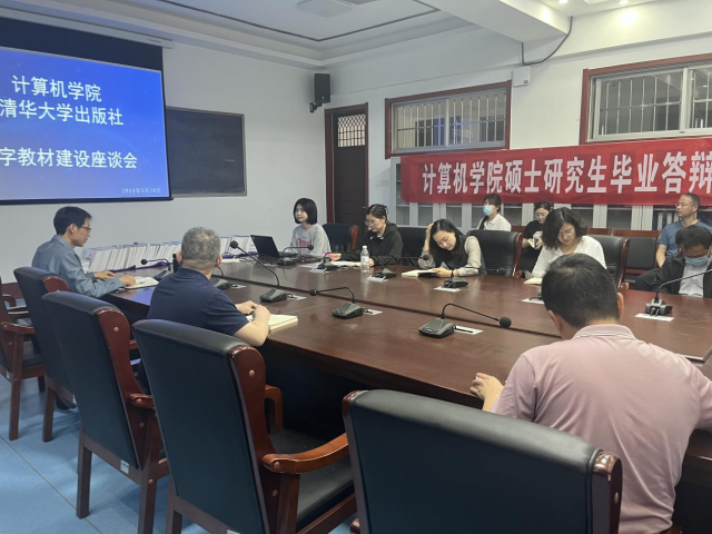 首先,李成友对学院开展教材建设的背景意义进行了说明,指出学校针对审核评估专家反馈的出版教材数量较少的问题提出加大教材建设力度,制订学院年度任务等现实背景,同时教材建设也是专业建设和课程建设的主要抓手,然后,李成友介绍了学院教材立项和出版情况以及教材建设计划。其次,清华大学出版社董编辑部以“建设优秀教材,服务人才培养”为主题,分别对纸质版教材、电子版教材建设进行了介绍。董编辑对清华大学出版社现有的面向数字化时代高校计算机系列、大数据系列、人工智能系列、虚拟现实技术系列等几个系列的出版情况,出版流程、出版选题、出版规划、政治性规范、合作平台等均进行了详细介绍,最后对数字教材建设与新形态教材建设的异同点进行了重点介绍,重点阐述了数字版教材交付方式、阅览方式、载体方式等特点。最后,清华大学出版社和计算机学院教师针对版权问题、稿酬问题、改版问题等进行了深入交流。