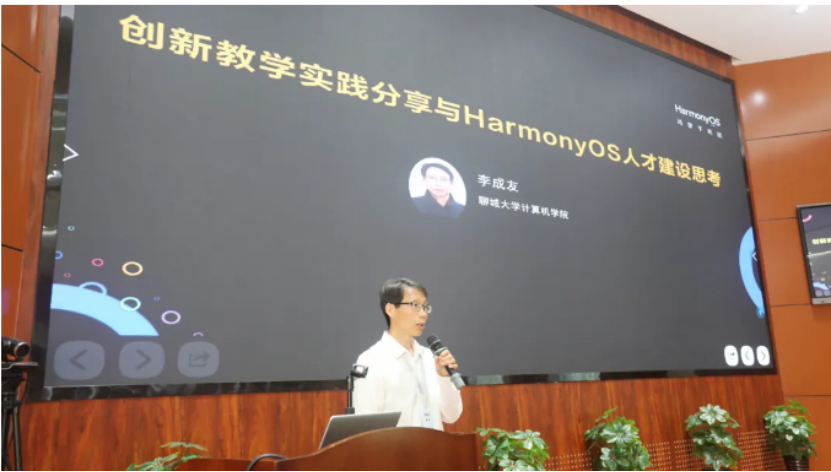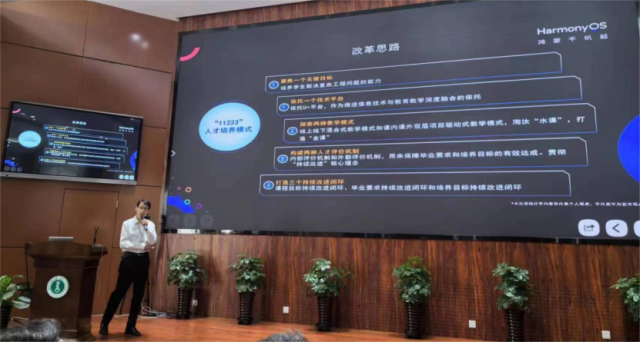 李成友以《创新教学实践分享与HarmonyOS人才建设思考》为题,分享了新工科建设和鸿蒙快速崛起的背景下,面对高校人才培养方面存在的共性问题,华体网页版登录入口开展“11223”人才培养模式的探索与实践。
