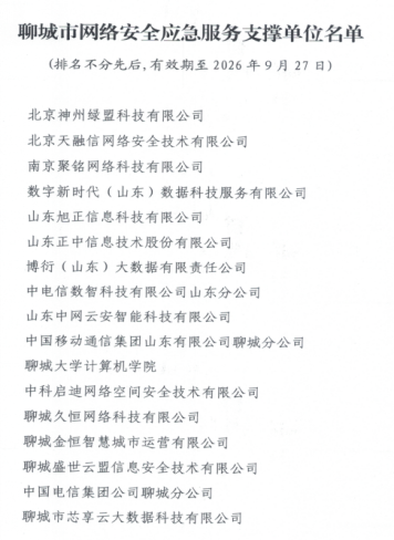 聊城市委网信办为深入贯彻落实《中华人民共和国网络安全法》,进一步提升聊城市网络安全保障能力,强化网络安全事件应急处置能力,面向社会公开遴选的网络安全应急服务支撑单位。